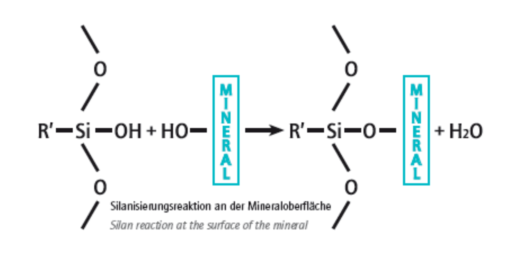 通过这种反应,硅烷可在处理过的表面形成持久的化学改性。这就增强了填料与聚合物之间的粘附性,为材料提供了额外的性能,如增加强度、提高机械稳定性和优化加工性。